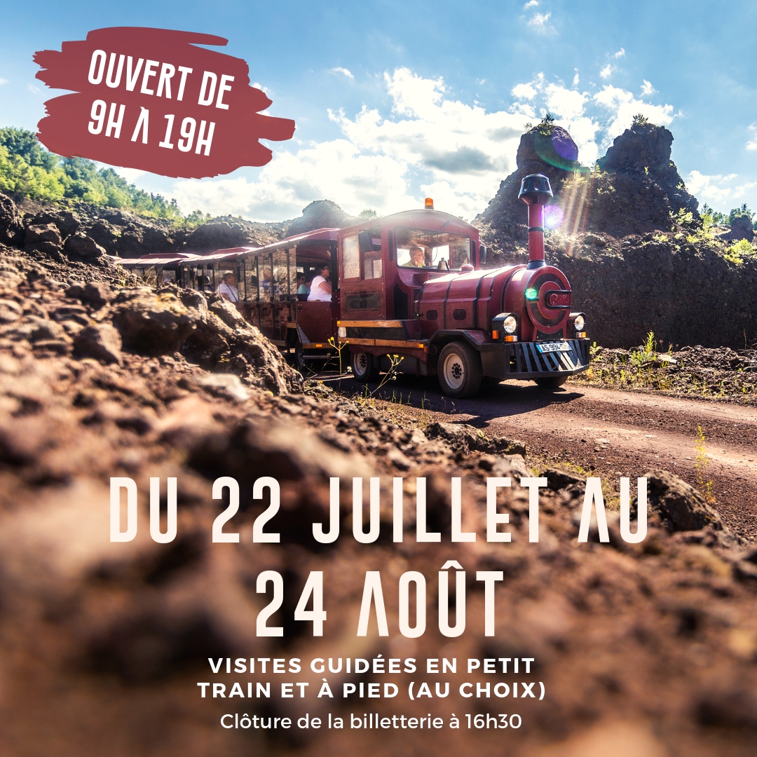 Du 22 juillet au 24 aout, le site est ouvert de 9h00 à 19h00 et vous propose des visites en PETIT TRAIN et À PIED.