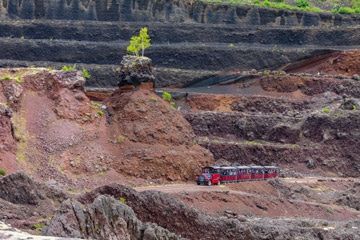 Un parcours au milieu des anciennes machines utilisées par les carriers lors de l’extraction des scories volcaniques : trommel, concasseur, crible (espace sonorisé). Un voyage dans le temps qui vous fera plonger le passé industriel de ce site reconverti.