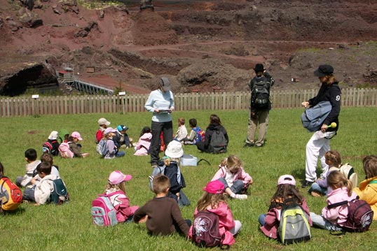 Pour vos classes uniques ou multi-cycles, l’équipe animation du Volcan de Lemptégy vous propose une balade ludique sous forme d’olympiades. Les élèves sont répartis en équipe et se confrontent lors d’un quiz. Ils doivent faire preuve d’attention pour remporter la partie. Tout au long de leur exploration, les enfants découvrent les 6 étapes de transformation du paysage par la nature et les hommes. Ils identifient les roches volcaniques aux couleurs et aux formes variées. Après avoir traversé les machines de triage, 4 des jeunes, devenus dessinateurs muets, font alors deviner les usages de cette richesse naturelle à leurs copains ! Les équipes collectent des autocollants à chaque victoire. Regroupés sur les carnets de route, ils donnent un résumé en images et en couleurs de la visite. Les pierres de Volcan récoltées sur place seront aussi de beaux souvenirs. Cette quête volcanique sera complétée par le film 4D « Aux Origines » et par la nouvelle attraction dynamique « le Volcan’Express ».