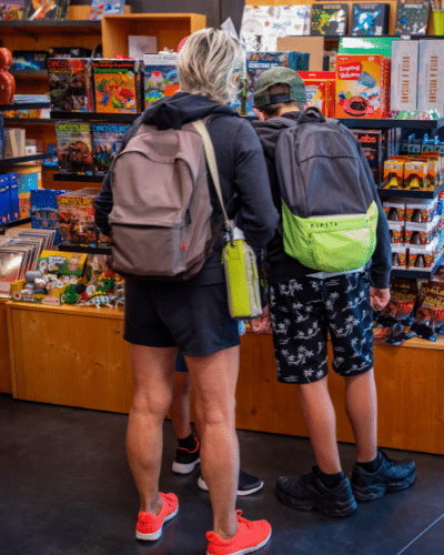 Les enfants vont à coup sûr se diriger vers ce rayon où fourmillent une multitude de petits trésors spécialement adaptés aux jeunes : peluches, jeux éducatifs thématiques (volcans, dinosaures, pirates, dragons, robots…), livres, coloriages…